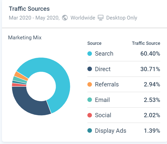 - Search and direct traffic are the major traffic sources